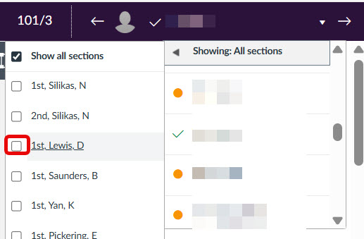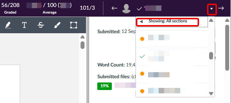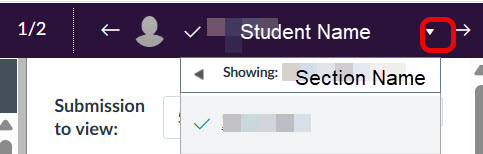 - A new menu should appear indicating which section is displayed. By default Speed Grader shows ‘All Sections‘ when first used, but may subsequently remember the last section selected.