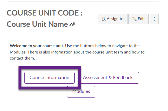 The Key information section of the course template enables students to be clear about what they should expect to achieve by the end of a course unit.