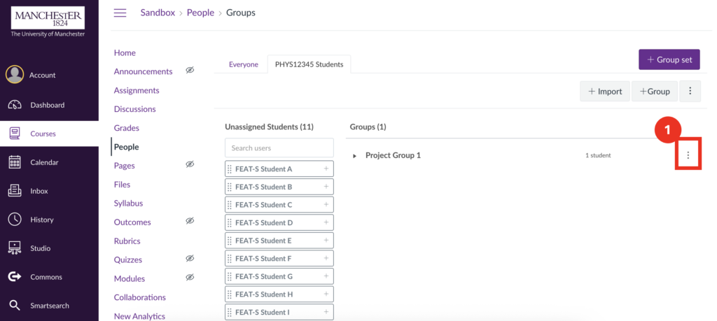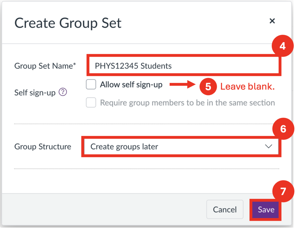 Step 4: Give your group set a specific and meaningful name. E.g., something like “PHYS12345 Coursework 1A” works better than just “Group 1” or “Coursework”.