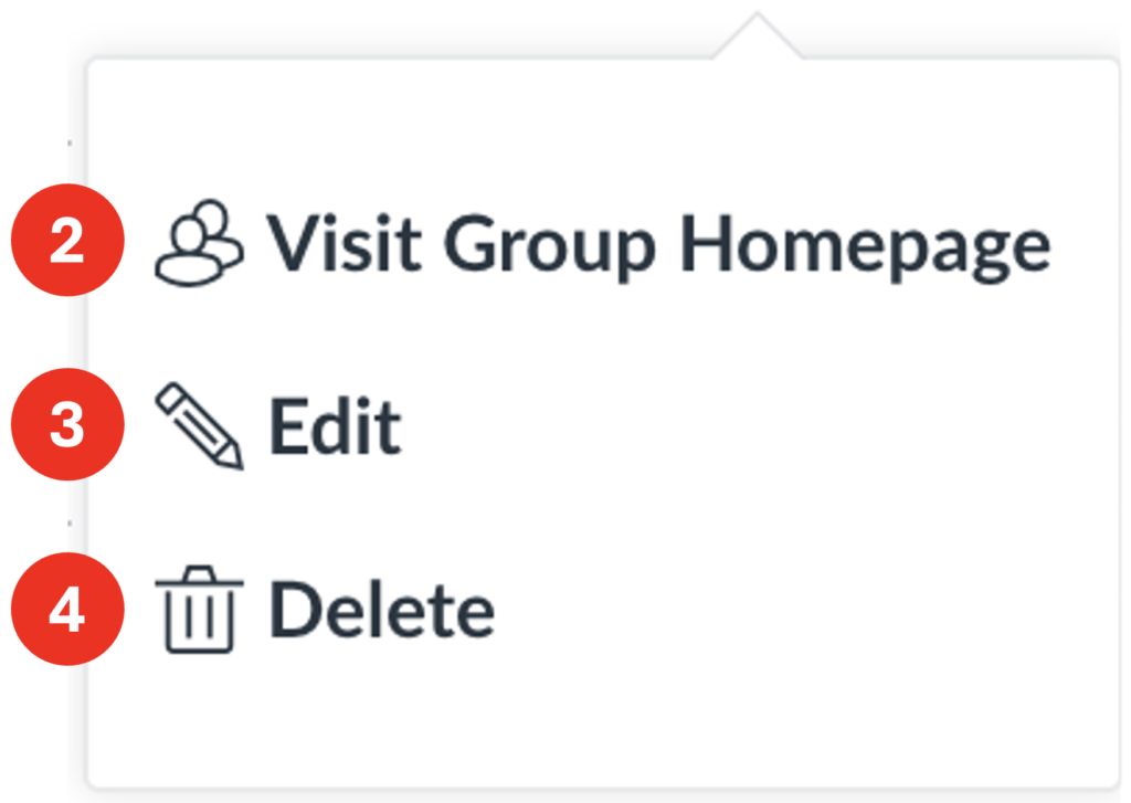 2. Visit Group Homepage – takes you to the group page, where you can view group members, files, discussions, pages, collaborations and make announcements.