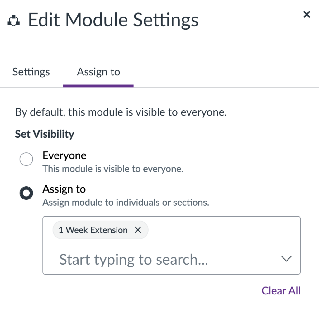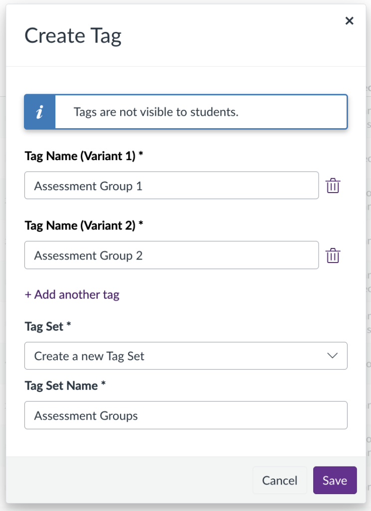 Similarly to sections and individual students, tags are available to select from in the Assign To area of an assignment or content item.