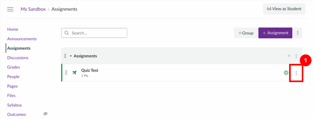 Step 1: Click the 3 dots to the right-hand side of your quiz.