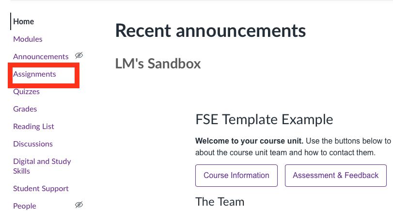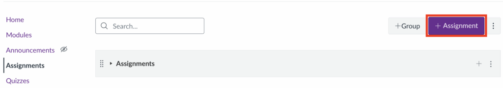 - On your preferred module select the ‘+ Assignment’ button on the top right.