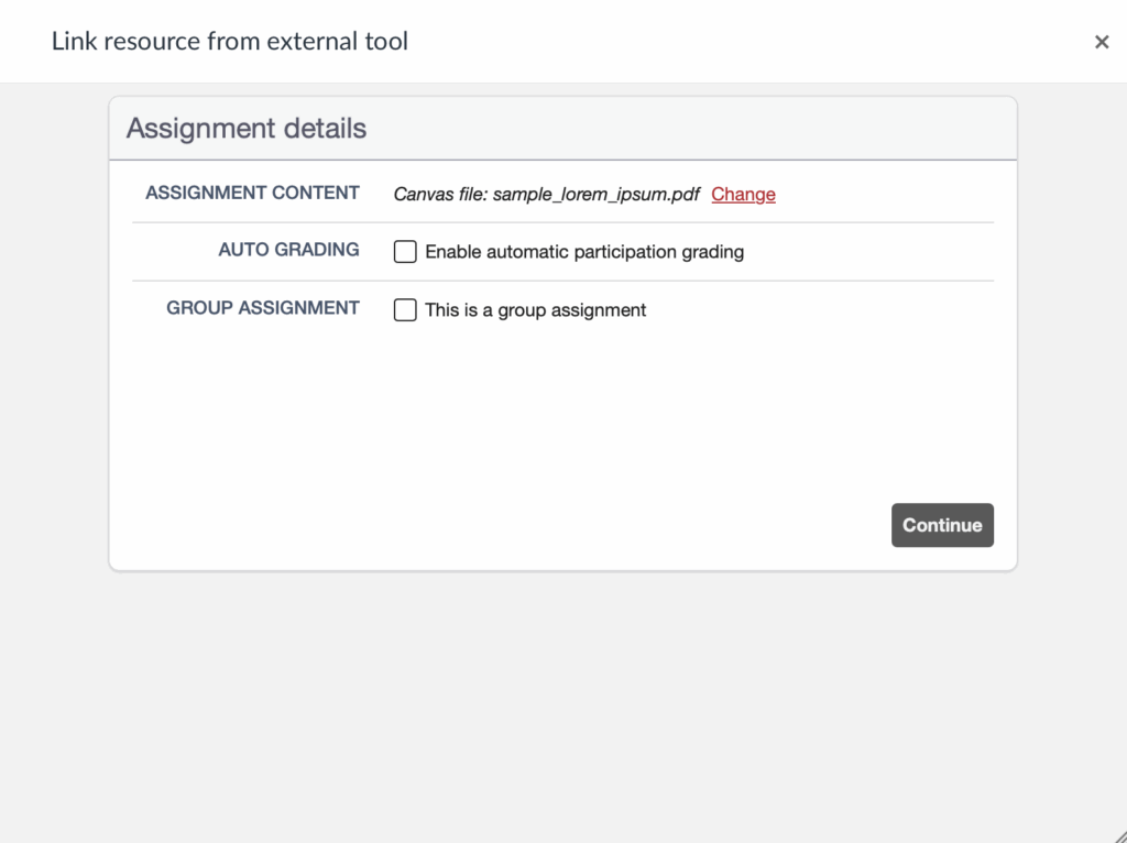 - Once chosen, you will also be able to pick your assignment details (see image on the right). Then press continue on the bottom right corner.