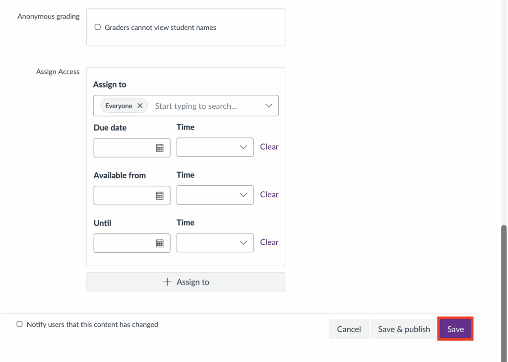 - Then scroll to the bottom of the assignment page and click on ‘save‘.