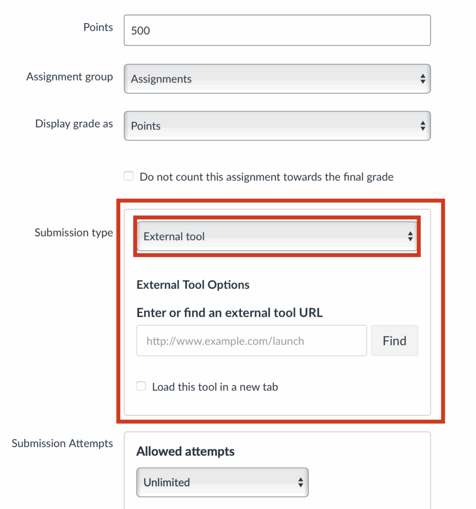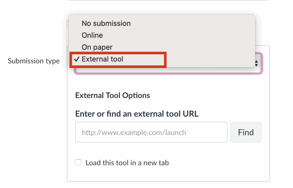 - Once you are on the new assignment page, Give a name and a description to your assignment. Then scroll down and find the ‘submission type‘ section. Click on the drop down menu (A highlighted in the image.