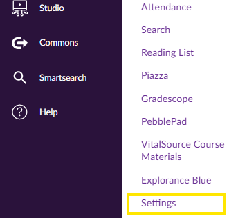 Select the Navigation tab at the top. The Navigation settings page allows you to enable/disable course menu items to show/hide them from student view. You can also re-order menu items by dragging and dropping them into the desired position.