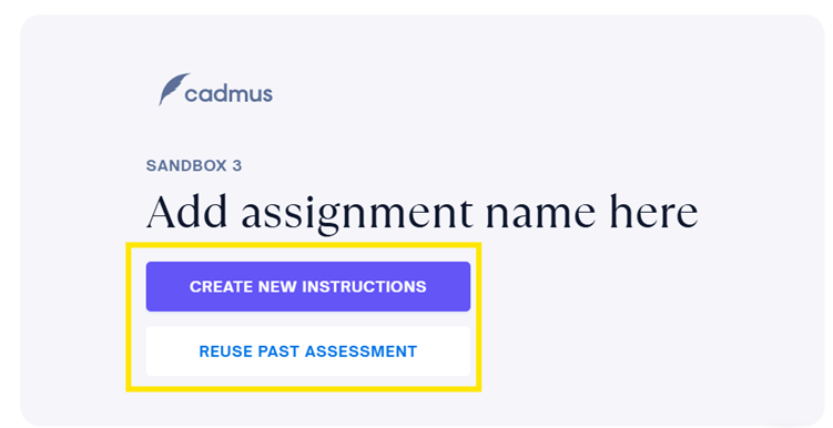 You should then see two links below your assignment description. Click on either the ‘Create New Instructions’ link or ‘Reuse Past Assessment’ link, dependent on your preferred option: