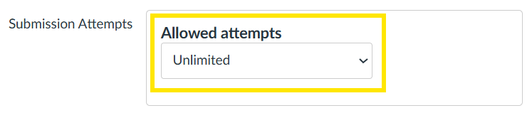 Submission attempts. Ensure that this is set to ‘Unlimited’ so that submissions and grades are passed through to Canvas correctly: