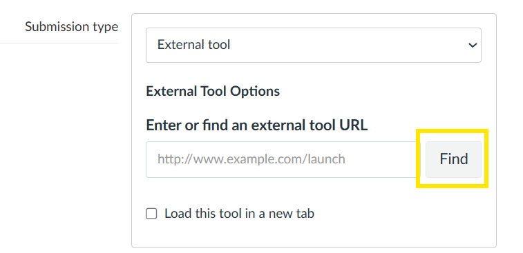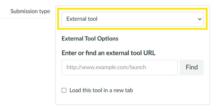 Submission Type. In the ‘Submission type’ box, choose ‘External Tool’: