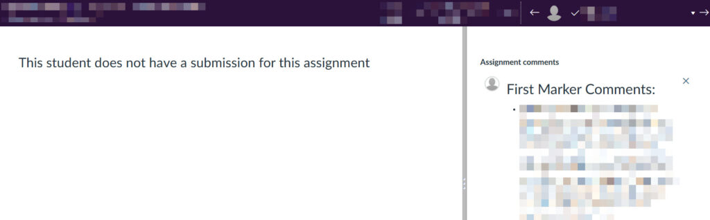 For courses that required first and second markers to mark independently within Canvas, two inboxes were used in the 2024-2025 PGT dissertation spaces. Therefore, each submission inbox has an associated column within Canvas Gradebook. In this instance, staff can choose to export grades from both submission inboxes to be able to calculate an agreed mark outside of Canvas.