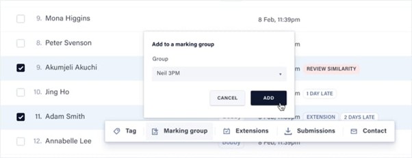 - Click Add to confirm and add the selected students to the marking group.