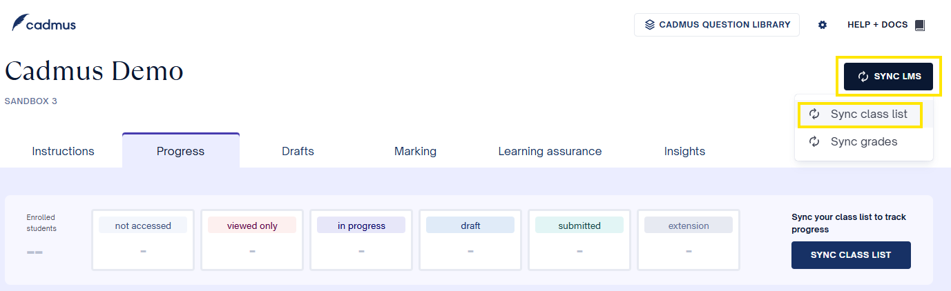 You can sync your class list multiple times throughout the assessment to ensure any withdrawn or recently enrolled students are always updated in the Cadmus class list.