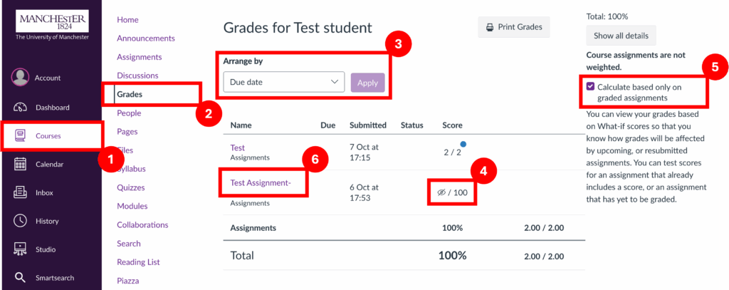 Step 4: Some assignment grades may not be visible if they have not been released yet.